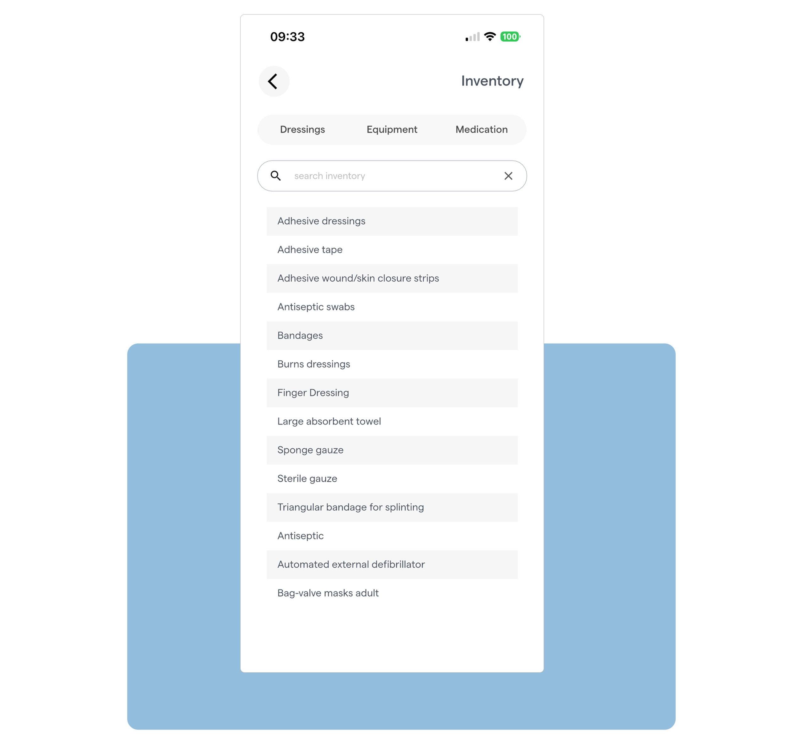 Providing doctors with a list of what is available on-board their flight from the medical inventory