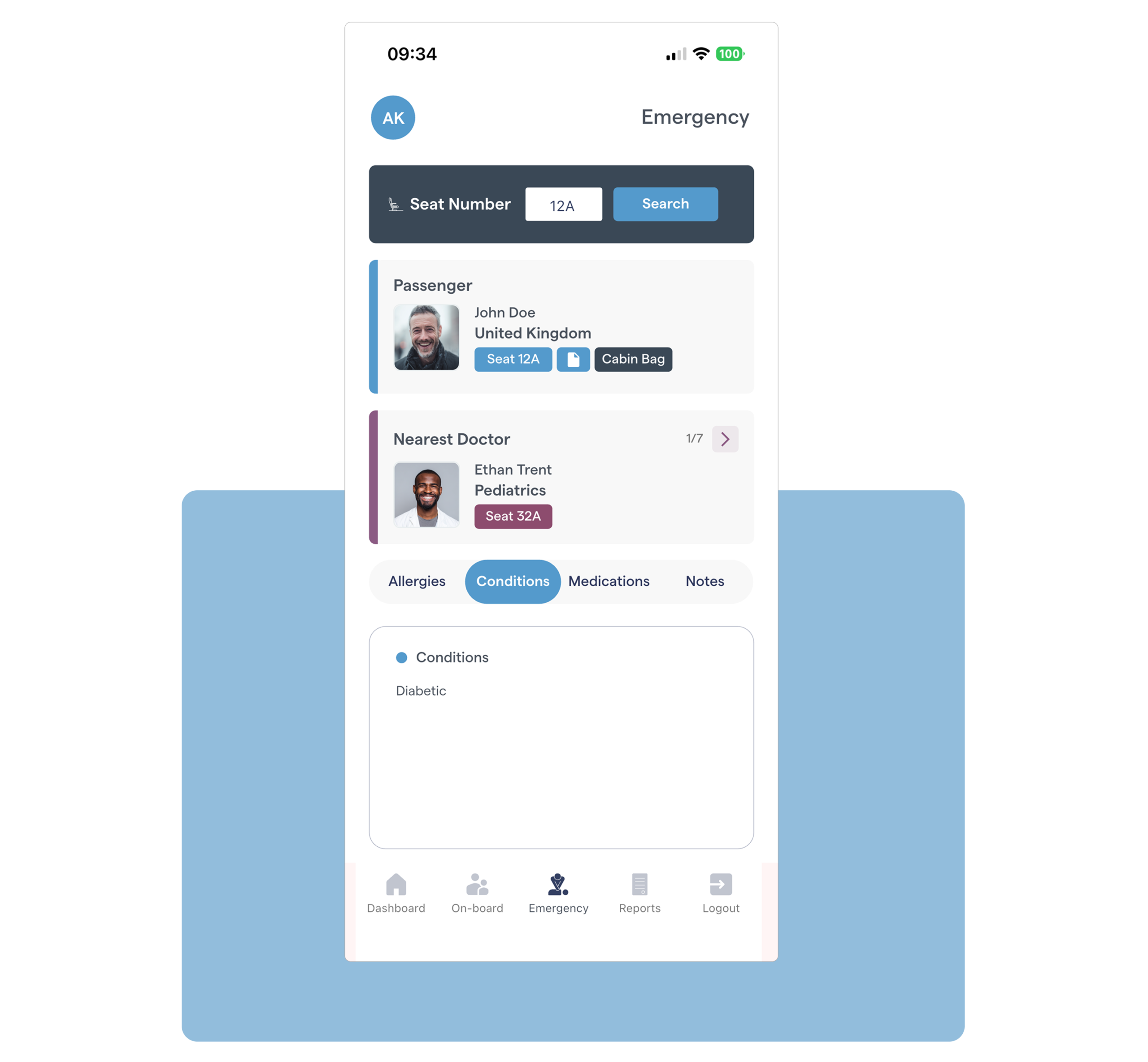 In that situation, the doctor will be able to see key details such as the passenger’s medical conditions, allergies, medications, any critical notes, and a brief description of their cabin bag to help identify them quickly