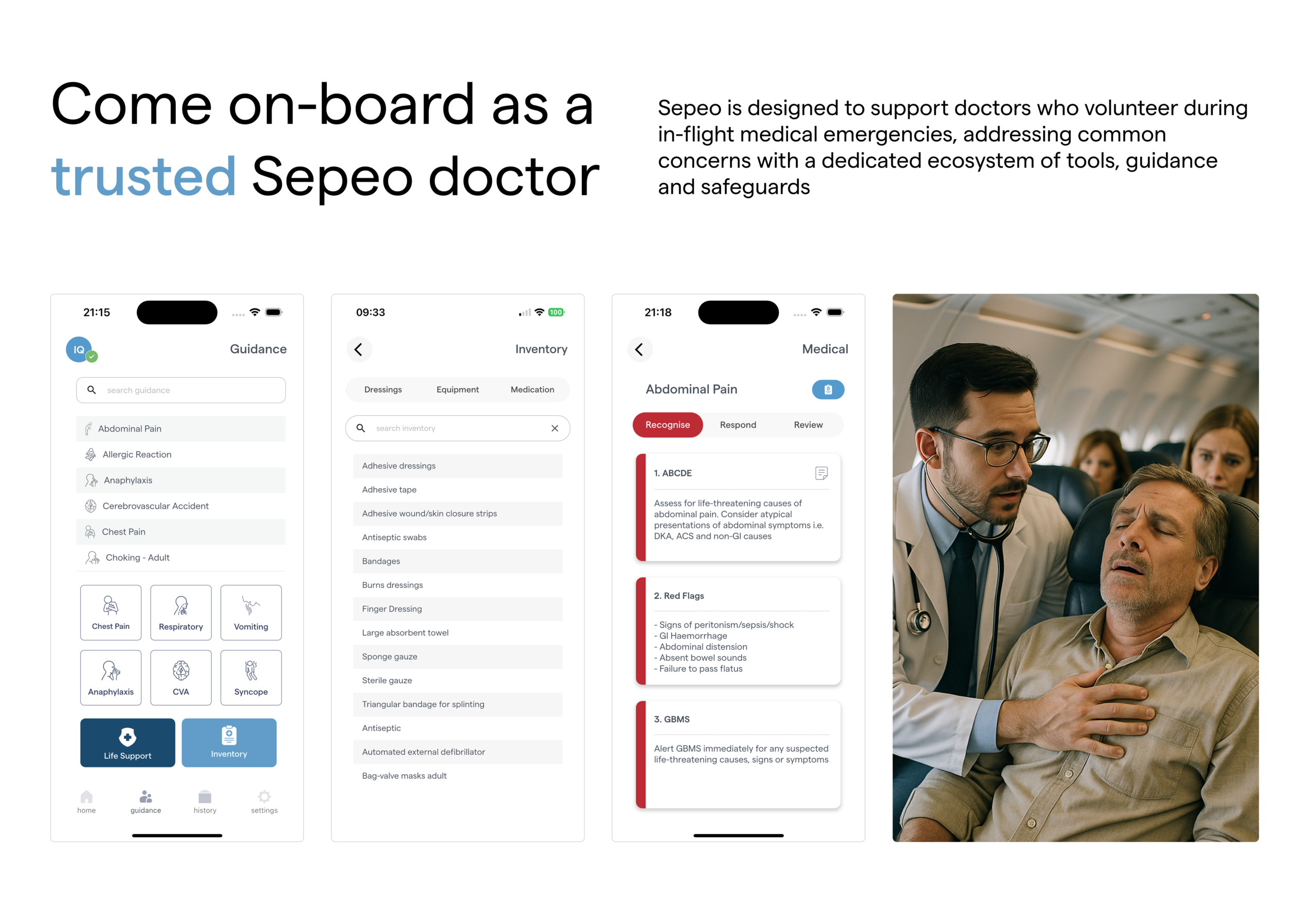 Knowing that qualified doctors are volunteering for in-flight medical emergencies is central to Sepeo