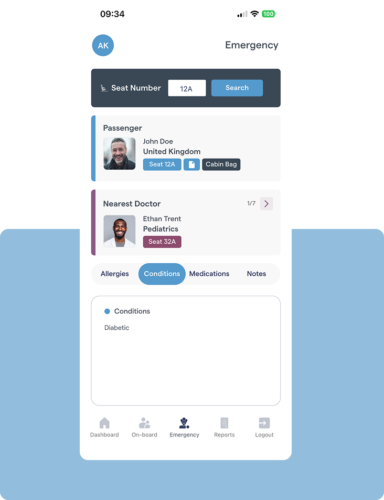 In that situation, the doctor will be able to see key details such as the passenger’s medical conditions, allergies, medications, any critical notes, and a brief description of their cabin bag to help identify them quickly